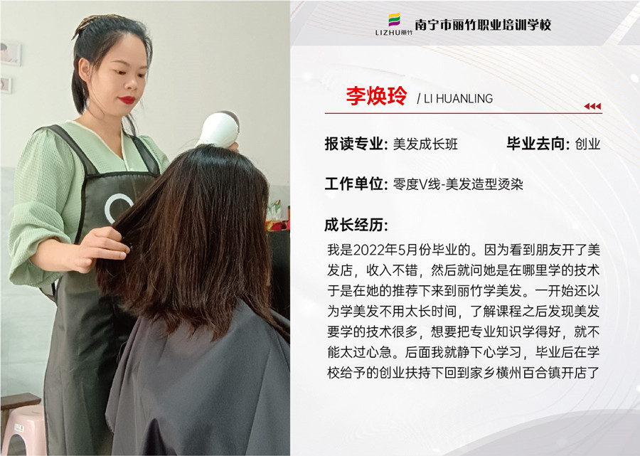 南寧美發(fā)創(chuàng)業(yè)、南寧美發(fā)創(chuàng)業(yè)發(fā)展:南寧美發(fā)專業(yè)學(xué)校-麗竹學(xué)校的招生前臺,一場溫馨的見面會正在上演。22級美發(fā)全能班的方冬瑩,李煥玲,盧素豐,梁麗麗帶著滿滿的創(chuàng)業(yè)成果,懷揣著一顆熾熱的感恩之心重回母校,感恩母校提供的學(xué)習(xí)平臺,感謝老師的專業(yè)教導(dǎo)。