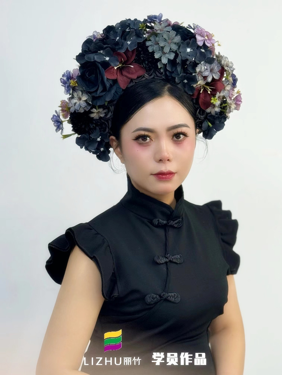 廣西化妝寫真、廣西寫真培訓(xùn)化妝:簪花。是漢族婦女頭飾的一種。將屬于中國非物質(zhì)文化遺產(chǎn)的蟳埔女“簪花圍”佩戴在頭上,增加了一種生機勃勃、生動活潑的生命氣息。而在廣西彩妝造型正規(guī)學(xué)校(麗竹彩妝造型正規(guī)學(xué)校)里,廣西化妝高彩班的同學(xué)們也在認(rèn)真進(jìn)行著國風(fēng)簪花造型的創(chuàng)作。