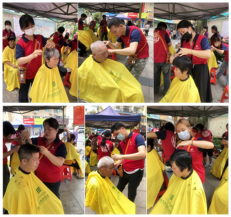 活動從早上9點開始,一直持續(xù)到中午才結束。隨著氣溫的不斷升高,志愿者們的衣服也早已被汗水浸濕。但即便如此,面對有剪發(fā)需求的居民們,志愿者們“來者不拒”,忍著高溫的煎熬,直到服務完蕞后一名居民的離開。