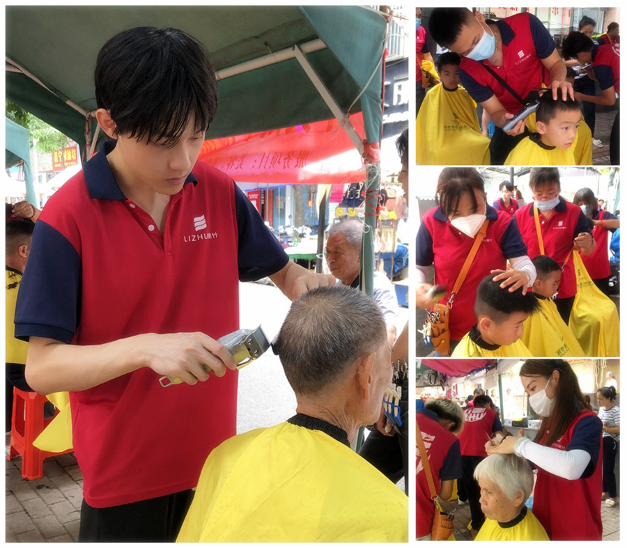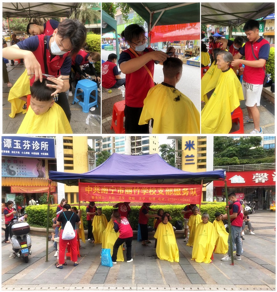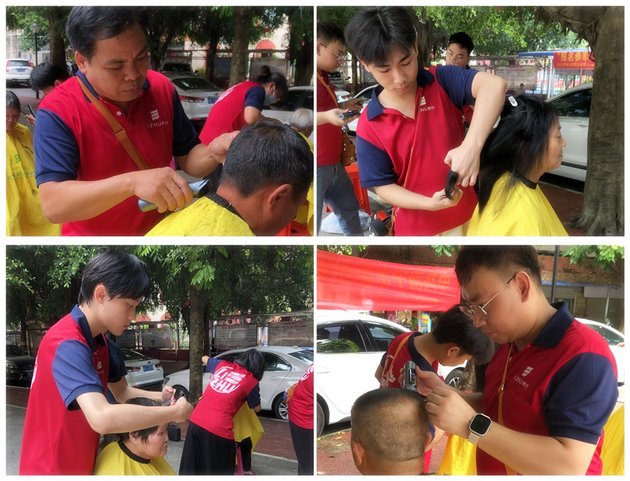 廣西美發(fā)義剪、廣西美發(fā)剪發(fā):隨著氣溫的日益升高,南寧市氣象中心也發(fā)布了高溫預(yù)警。面對滾滾襲來的熱浪,廣西美發(fā)剪發(fā)職業(yè)學(xué)校(麗竹美發(fā)剪發(fā)職業(yè)學(xué)校)的同學(xué)們在老師的帶領(lǐng)下,來到各大小區(qū)進行外出教學(xué)實踐之余,也為居民送去夏日清涼,免費為大家進行理發(fā)服務(wù)。