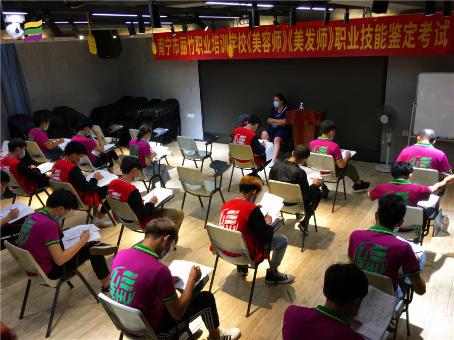 南寧美容美發(fā)學(xué)校:麗竹學(xué)校作為南寧市職業(yè)技能定點(diǎn)培訓(xùn)機(jī)構(gòu),于7月26日在本校進(jìn)行了“南寧市麗竹職業(yè)培訓(xùn)學(xué)?!睹廊輲煛贰睹腊l(fā)師》職業(yè)技能鑒定”考試。
