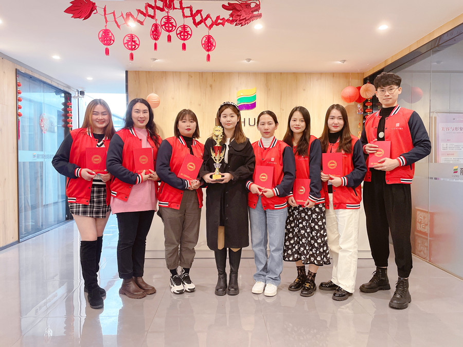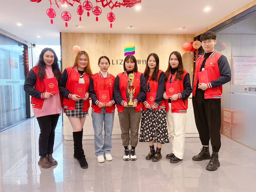 麗竹學(xué)校美甲專(zhuān)業(yè)代表隊(duì)與賽前指導(dǎo)姚老師合影