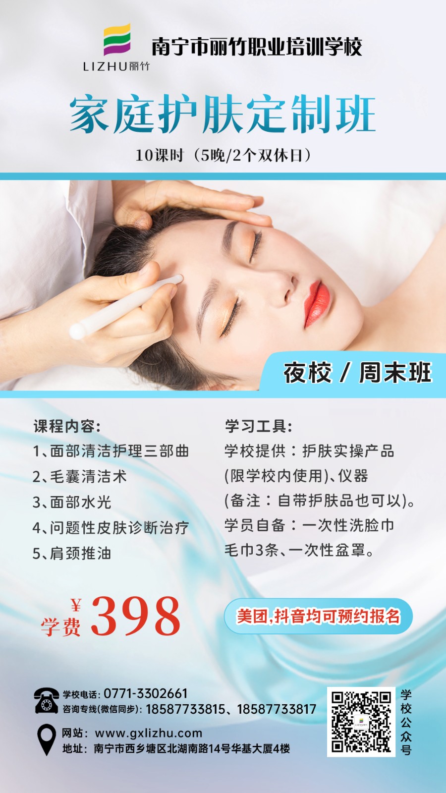 南寧美容護膚培訓學校(夜班/周末班):家庭護膚定制班